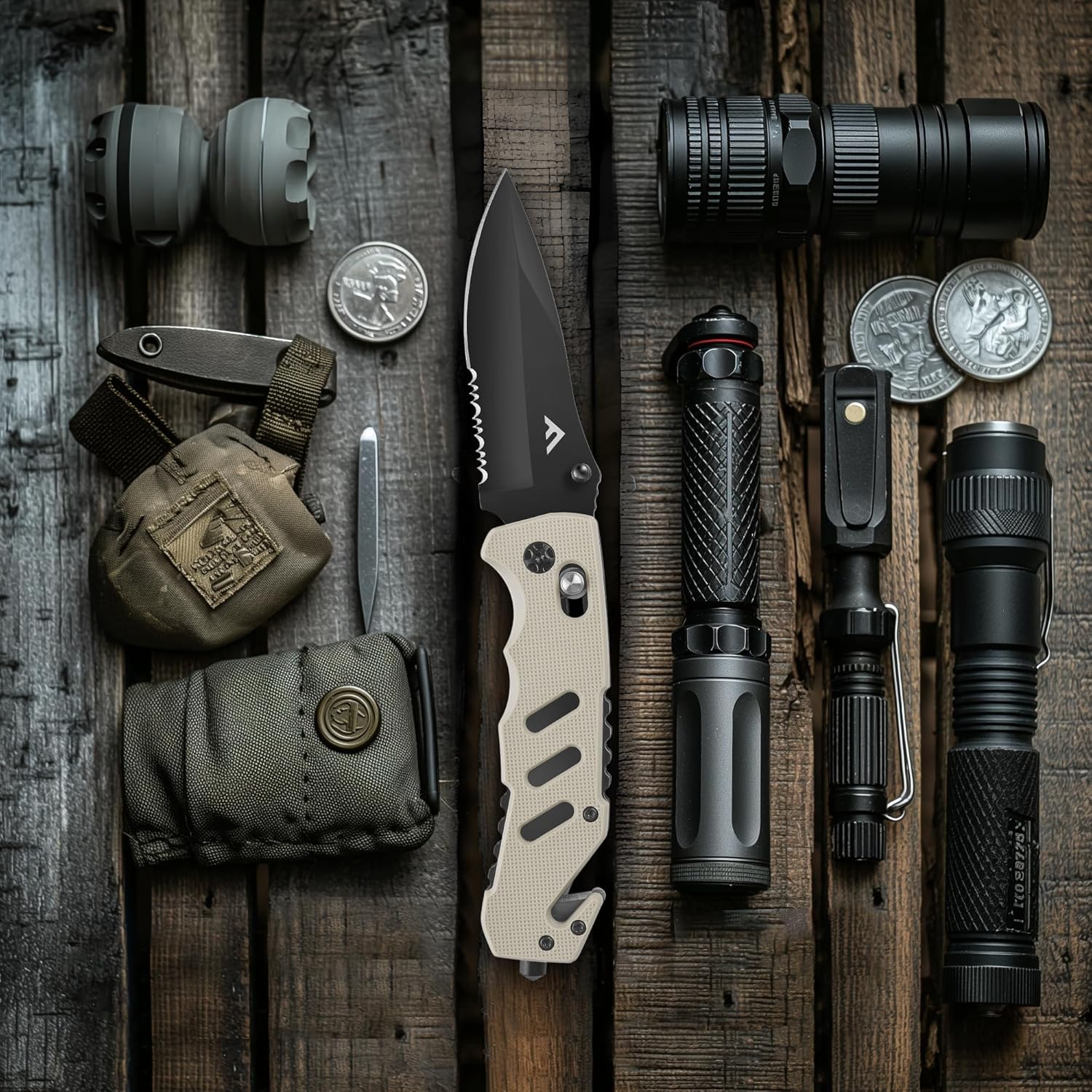 Equipped with a glass breaker, seatbelt cutter, and serrated blade, this tool is ready for any emergency situation.